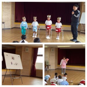 10月のお誕生日会をしました🎂 10月生まれのお友だちが、前で堂々とお話しをしてくれました✨ 今回は、ハロウィンのパネルシアターを楽しみました🎃🍭 そして今日は、ももぱんが手洗い・うがいの大切さについて教えてくれました🫧 寒くなってきたので、体調を崩さないようにいつでも手洗い・うがいを意識してくださいね!😌 投稿ナビゲーション 体育指導(笹)