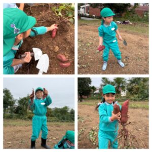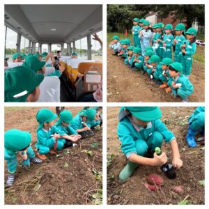 「大きなお芋が取れた‼︎」「お芋がたくさんくっついてきた😊」と大喜びでした。